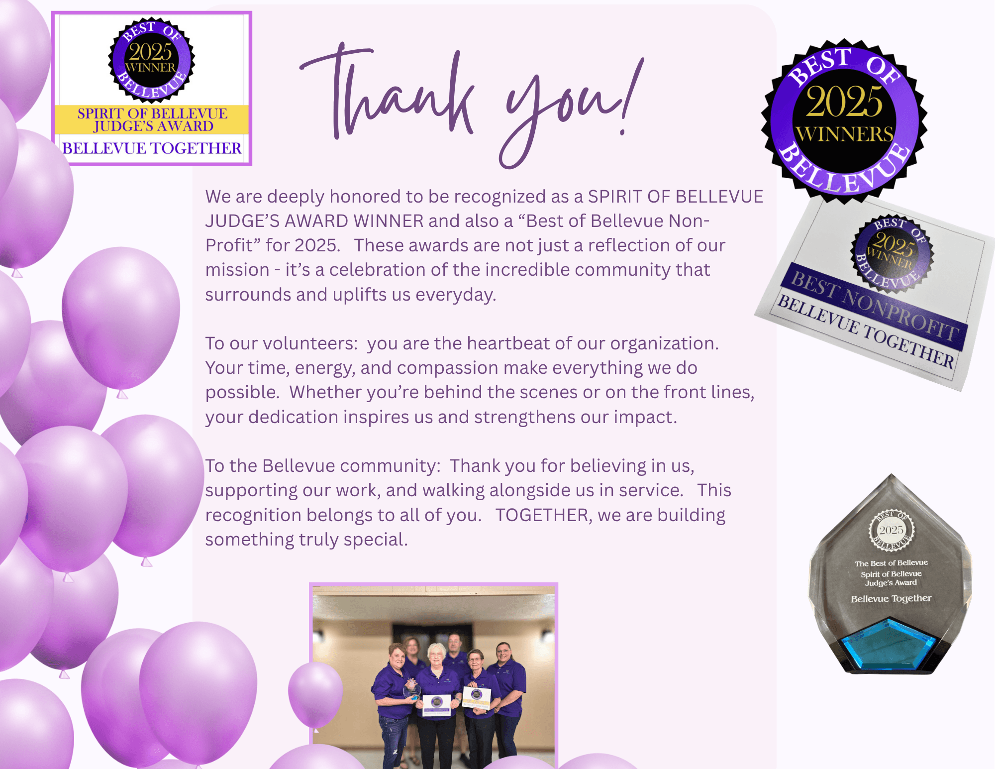 We help families who need household goods. The counselors and social workers of Bellevue Public Schools refer families for this service. The need is constant.